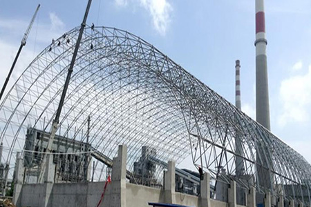 隨著我國(guó)電力事業(yè)的蓬勃發(fā)展,干煤棚網(wǎng)架的結(jié)構(gòu)得到了廣泛的研究;由于環(huán)保要求和建設(shè)用地的嚴(yán)格控制,煤炭的散堆方式必須被封閉儲(chǔ)裝方式所取代,所以干煤棚網(wǎng)架的出現(xiàn)是勢(shì)在必然;一般來(lái)說(shuō),干煤棚網(wǎng)架的結(jié)構(gòu)主要作用就是在煤場(chǎng)上加蓋,以防止煤炭下雨時(shí)受淋和刮風(fēng)時(shí)污染環(huán)境,是一項(xiàng)節(jié)能和環(huán)保工程。干煤棚網(wǎng)架的結(jié)構(gòu)一般來(lái)講,其長(zhǎng)度和寬度是根據(jù)裝機(jī)容量的需要來(lái)確定的,而其結(jié)構(gòu)的高度則由堆煤和斗輪機(jī)的作業(yè)要求來(lái)確定。因此,干煤棚的結(jié)構(gòu)的特點(diǎn)是跨度大、高度高、且覆蓋面積廣。