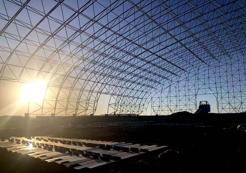 1、工程名稱:240萬噸年煤炭精選加工及全封閉煤炭儲運二期建設項目 承包范圍:屋面維護、運輸及安裝,必須按照甲方設計院確認的圖紙的加工制作、安裝。 承包方式:按圖施工、包工包料包安裝、質量保修。 2、工程量:投影面積 23128.32 m2,展開面積35973m2。 3、材料:正放四角錐螺栓球節點網架,按照甲方確認的圖紙設計要求加工制作。網架主材材質為Q355B鋼管,底漆二道70um,主檁條鍍鋅C型鋼C220*75*20*3.0,次檁條鍍鋅C型鋼C180*70*20*2.5,屋面板0.5mm厚彩鋼單板